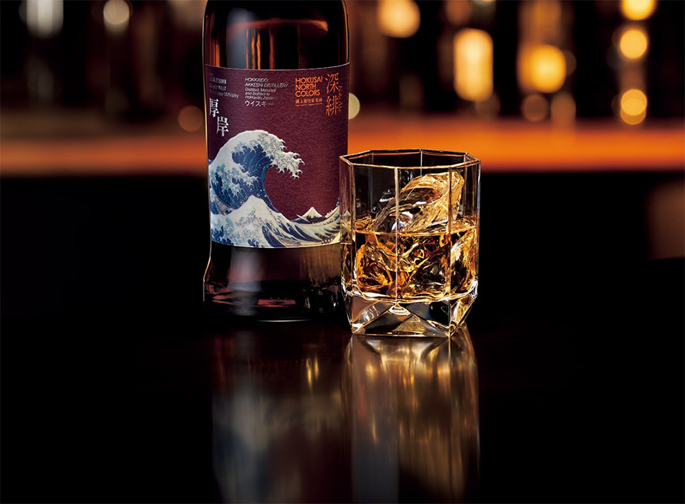 第3弾となる本商品は、「厚岸シングルモルトジャパニーズウイスキー HOKUSAI NORTH COLORS 深緋(コキアケ)」。